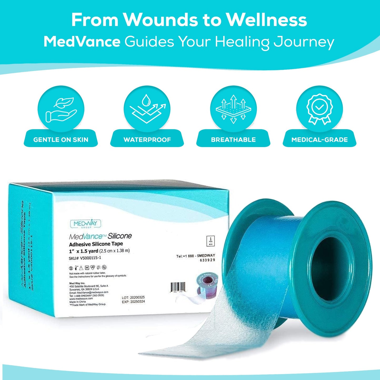 The MedVance Silicone Tape is a revolutionary medical product that offers numerous benefits for both patients and healthcare professionals. It features a thick medical-grade silicone adhesive that provides superior adhesion, ensuring the tape stays securely in place. The tape is also highly conformable, easily molding to the body's contours without restricting movement. It is transparent, making it ideal for use on sensitive areas or when a discreet appearance is desired. The tape is waterproof, allowing for long-term wear even during activities like swimming or showering. It has a low coefficient of friction, gliding smoothly over the skin to reduce irritation. Additionally, the tape is easy to use, tearing easily for quick and practical application. Overall, the MedVance Silicone Tape is a reliable and versatile option for medical needs.